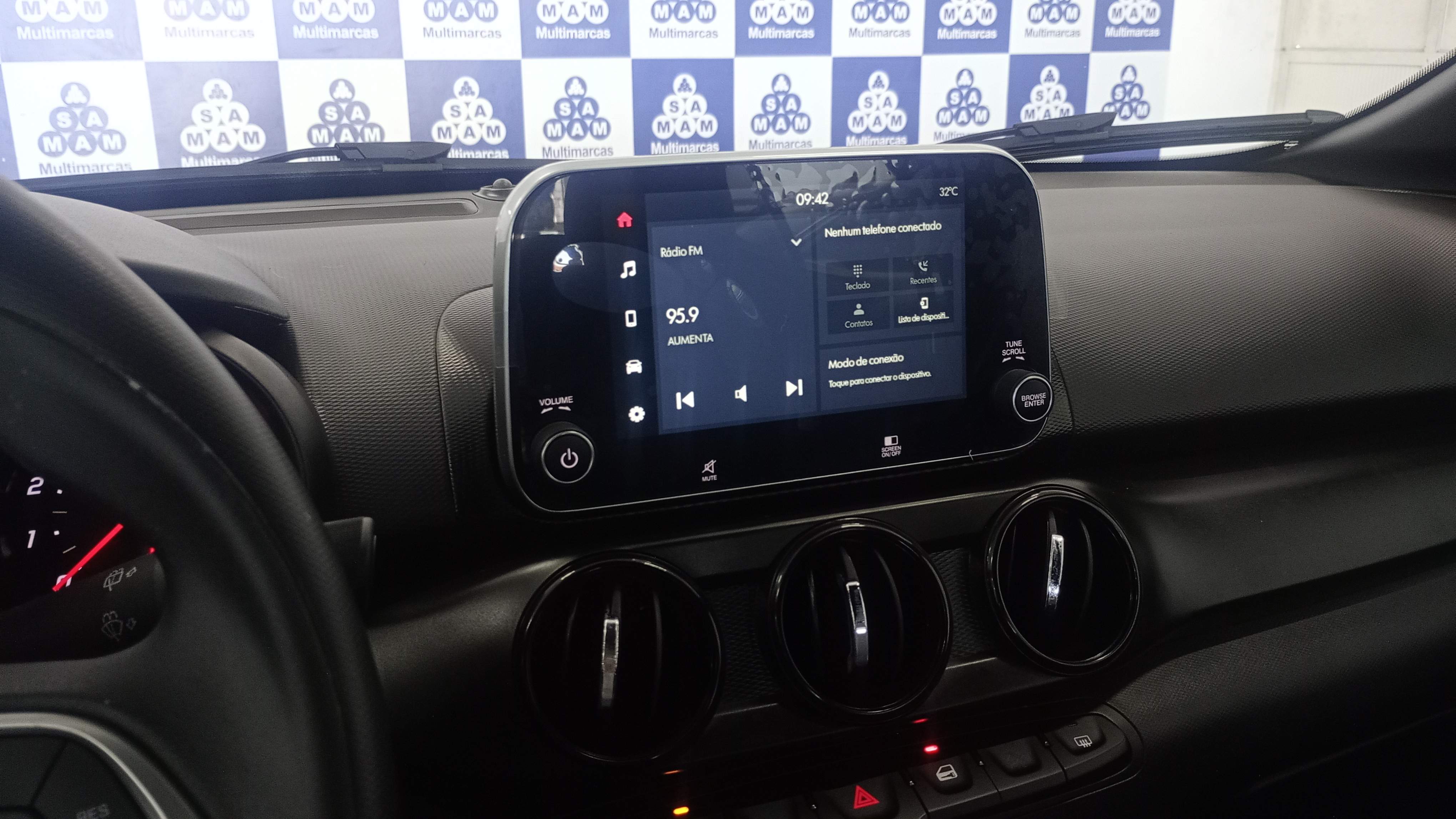 Ar condicionado e direção elétrica, vidros elétricos nas portas dianteiras, travas e retrovisores manuais, rodas de ferro com calotas, bancos em tecido, multimídia original com câmera de ré, airbags frontais e freios ABS.