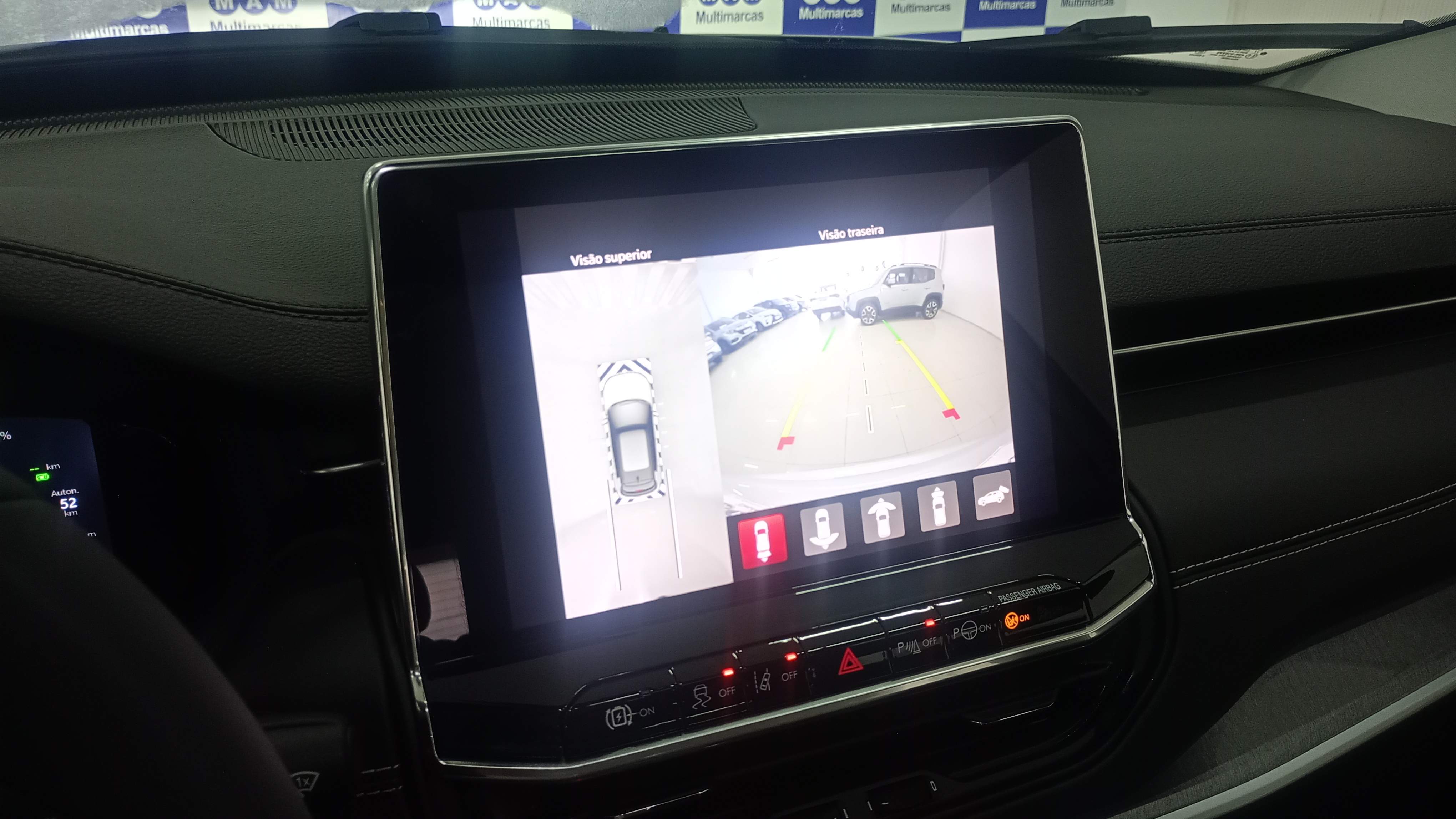 , assistente de estacionamento semiautomático, botões seletores de tração, assistente de permanência em faixa, frenagem automática de emergência, alerta de colisão frontal, alerta de ponto cego, controle de estabilidade e tração, airbags frontais, laterais e de vidros e freios ABS.